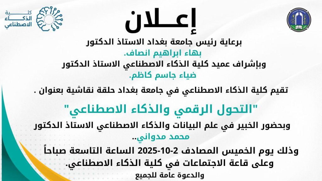 إعلان هام للمتقدمين إلى كلية الذكاء الاصطناعي في جامعة بغداد